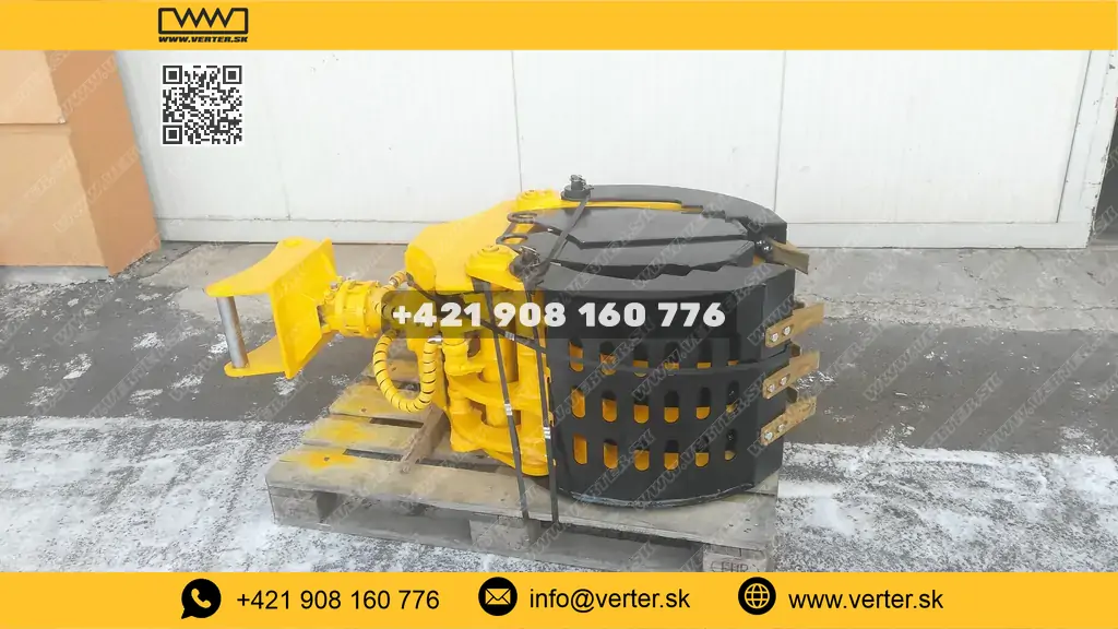 Hydraulicky otočný drapák pre precíznu manipuláciu s materiálom. Má veľmi dlhý popis, aby sme otestovali zarovnanie tlačidiel.